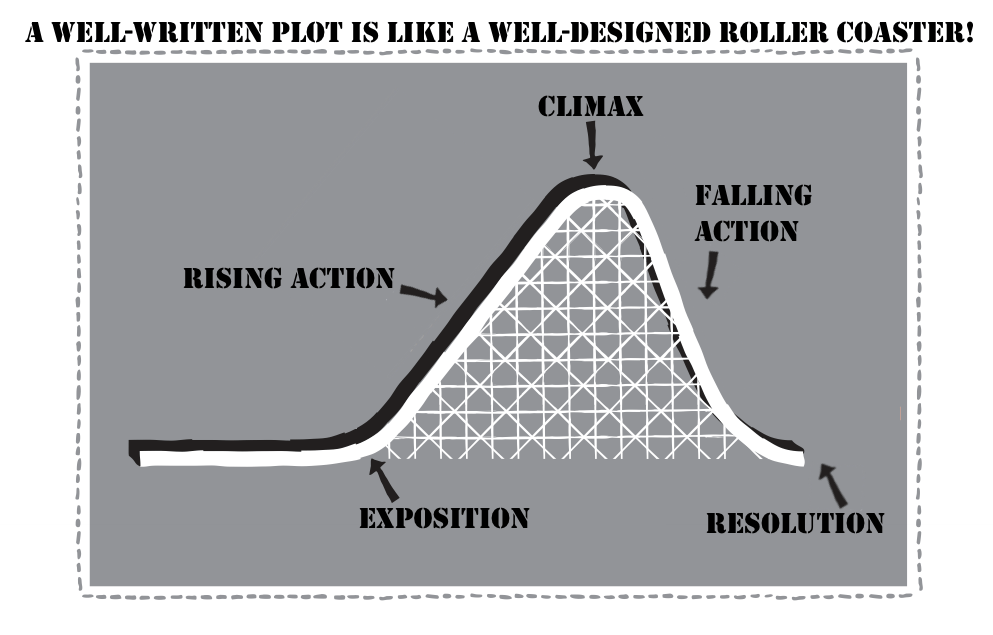 I took some time (well, quite a bit of time!) designing a new way to introduce the “elements of plot” to my ninth grade English students! Instead of using the original “Plot Mountain” (pictured below) – I decided to take my students on “Plot Roller Coaster Ride”! Sounds fun – right? Obviously, I thought so! With that being said, I took the liberty to create a comprehensive, lesson bundle covering “The Elements of Plot” in alignment with CCSS standards!